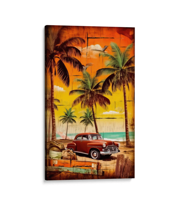 Ya sea que lo quieras exhibir en tu sala de estar, en una oficina, o en la habitación de un coleccionista de autos, este cuadro se convierte en el punto focal perfecto de cualquier habitación. Su temática única de un auto clásico en una playa cálida evoca la sensación de relajación y aventura, haciendo de este una adición ideal para crear un ambiente acogedor y distinguido. Regálate a ti mismo o sorprende a un amante del arte con este homenaje a la cultura automotriz de otra era.